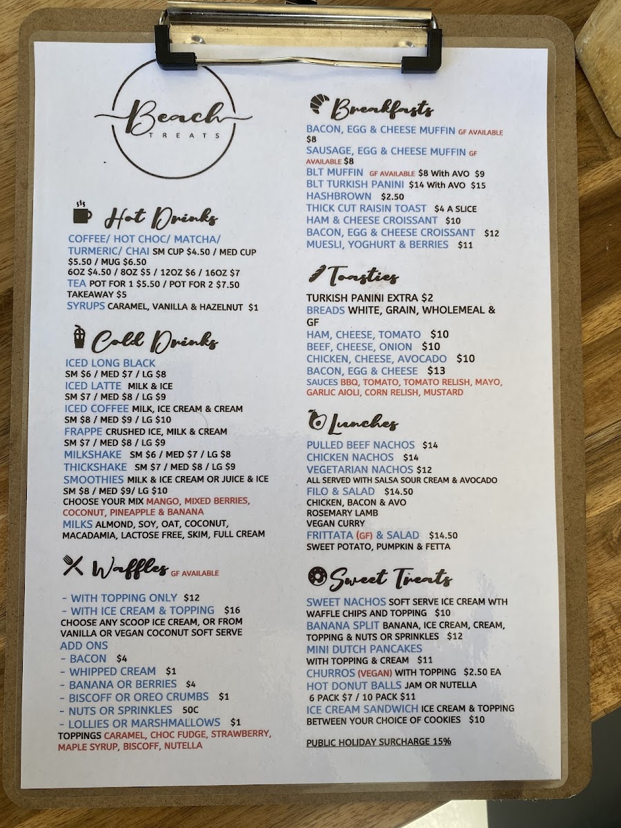 Welcome to Beach Treats Bargara, where the coastal allure meets culinary delight. Nestled at 53 Esplanade, Bargara, this charming café offers an inviting menu with something for everyone. Start your day with robust coffees or soothing matcha, each available for just A$5.50. For a refreshing twist, their iced beverages, ranging from Iced Coffee at A$8.00 to Thickshakes at A$7.00, are sure to quench your thirst.